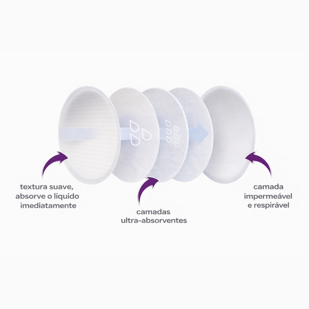 Alta absorção (até 140 ml): ajuda a segurar o leite e a evitar molhar o sutiã e a roupa.